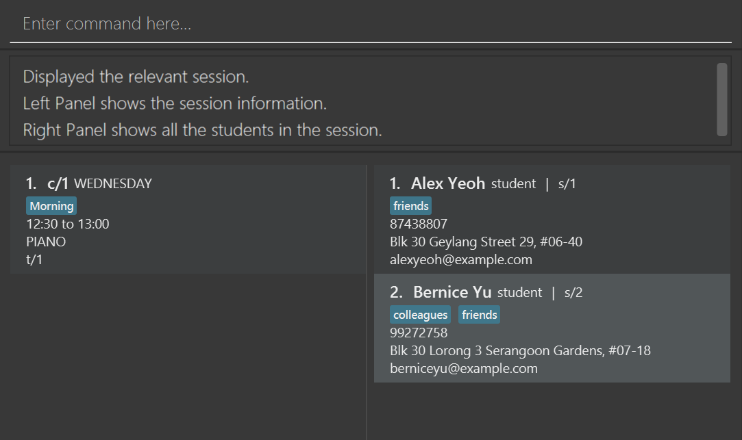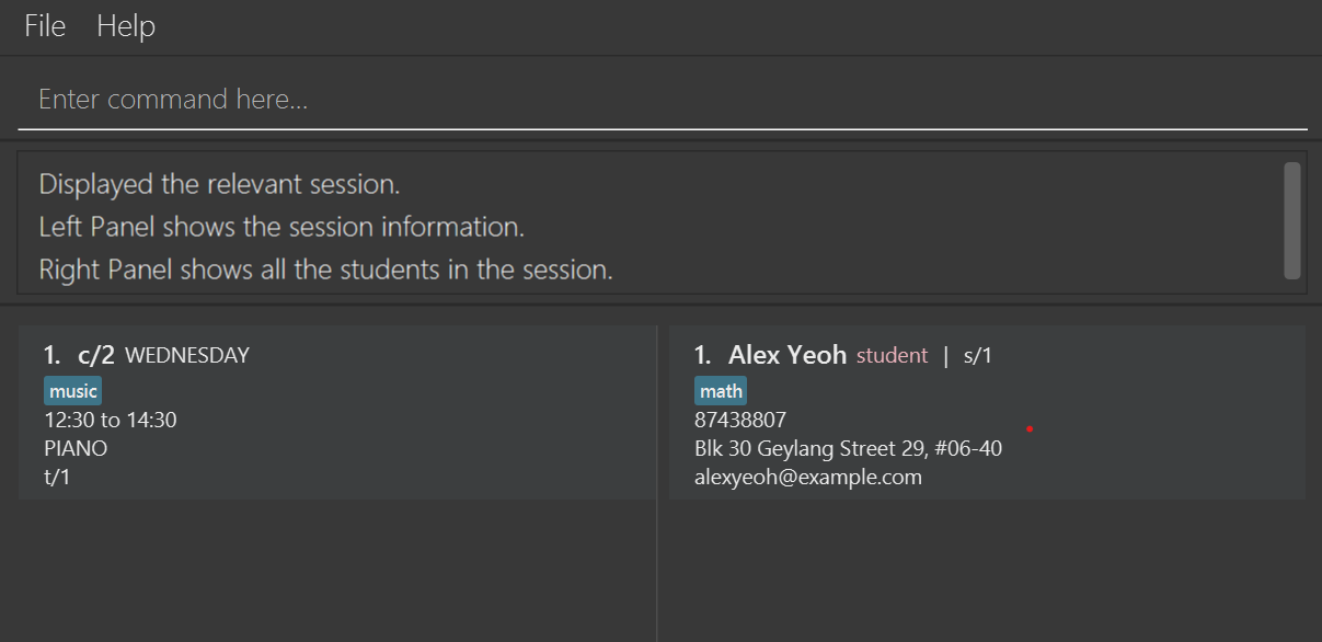 EzManage is a desktop application for managing students, tutors and classes by managers of tuition centres. While it has a GUI, most of the user interactions happen using a CLI (Command Line Interface).